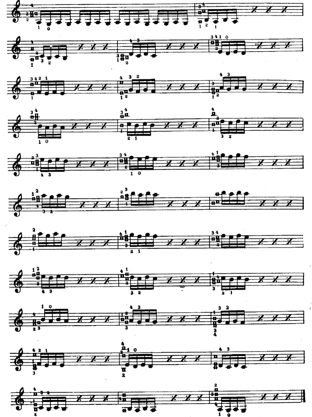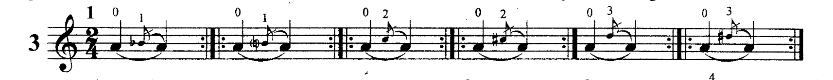 Grazie all'uso frequente delle corde vuote, in questo esercizio si dedica più attenzione per controllare lo stato del polso, palmo e pollice e liberarsi dalla "presa rigida" del violino.