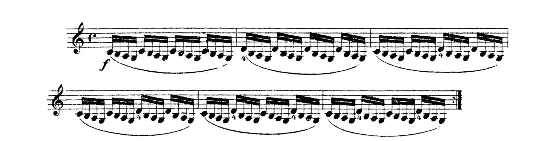 Si raccomanda di studiare questo esercizio lentamente, suonando 4 note in un arco (4 legato), poi più animato 8 legato e alla fine più veloce, come scritto (16 legato). Si può fare anche sulle altre corde.